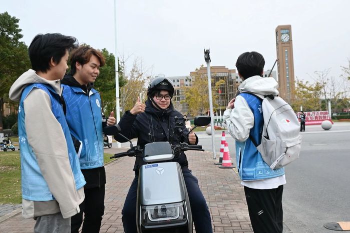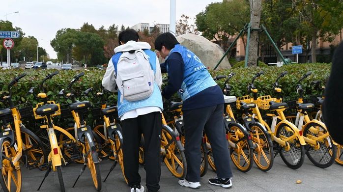 办公楼、教学楼以及园区宿舍门口,是师生们每日的必经之地。志愿者们将摆放车辆作为服务的重要内容,他们认真地挪动着每一辆自行车、电动车,使原本杂乱无章的停车区域变得井然有序。他们用自己的双手,为大家开辟出一条条畅通无阻的道路,不仅方便了师生的出行,也让校园环境更加整洁美观。整齐排列的车辆,成为了校园中一道独特而又温馨的风景线,彰显着志愿者们对校园的细心呵护。、