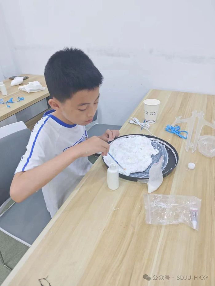 手工制作环节中,志愿者团队为参与者准备了系统化的创作体验。活动配备标准化材料包,内含高精度月球灯外壳、变色LED灯带、夜光涂料等专业物料,同时提供分步逐个的教学指导,确保各年龄段参与者均能顺利完成制作。青少年们充分发挥想象力,将航天元素与艺术创作相结合,通过夜光涂装、场景搭建等工艺,制作出兼具科技感与艺术性的月球灯作品。每件作品均展现出独特的创意巧思,有效提升了青少年们的实践能力与创新思维。