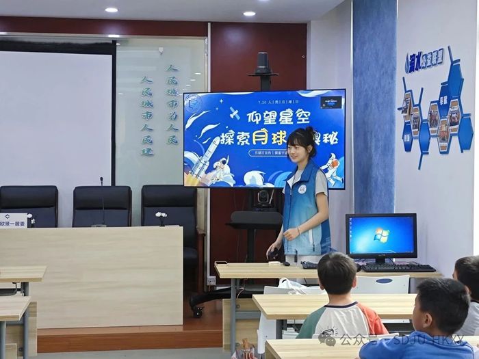 活动现场,志愿者团队通过PPT的讲解,系统阐释月球地质演化历程。在"中国探月工程"专题环节,通过珍贵影像资料与实物模型展示,详细解读嫦娥五号采样返回、玉兔二号月球车等重大科研成果,生动展现我国航天事业的辉煌成就,切实增强了科普教育的代入感与感染力。