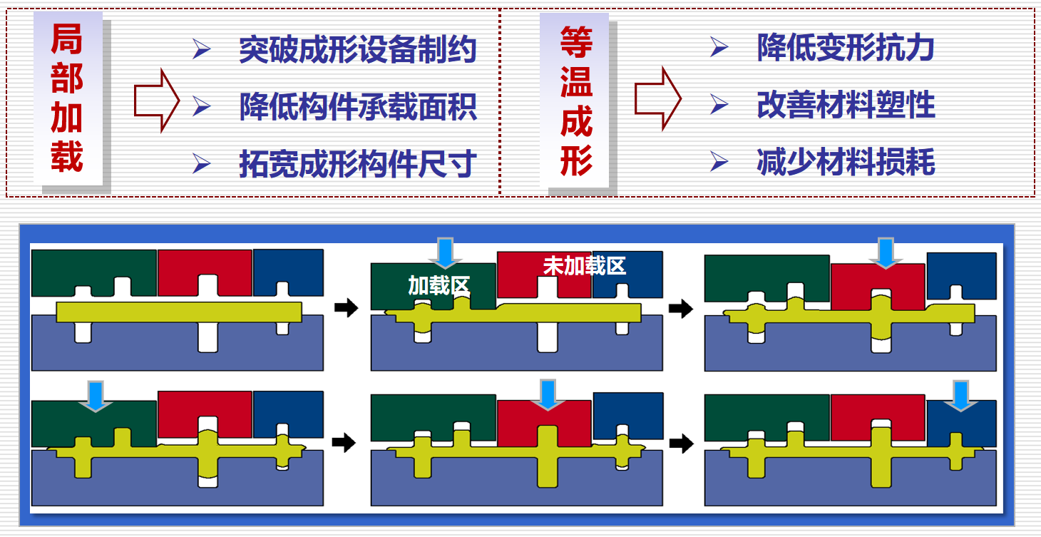 局部加载+等温成形————工艺的复合实现省力近净成形。