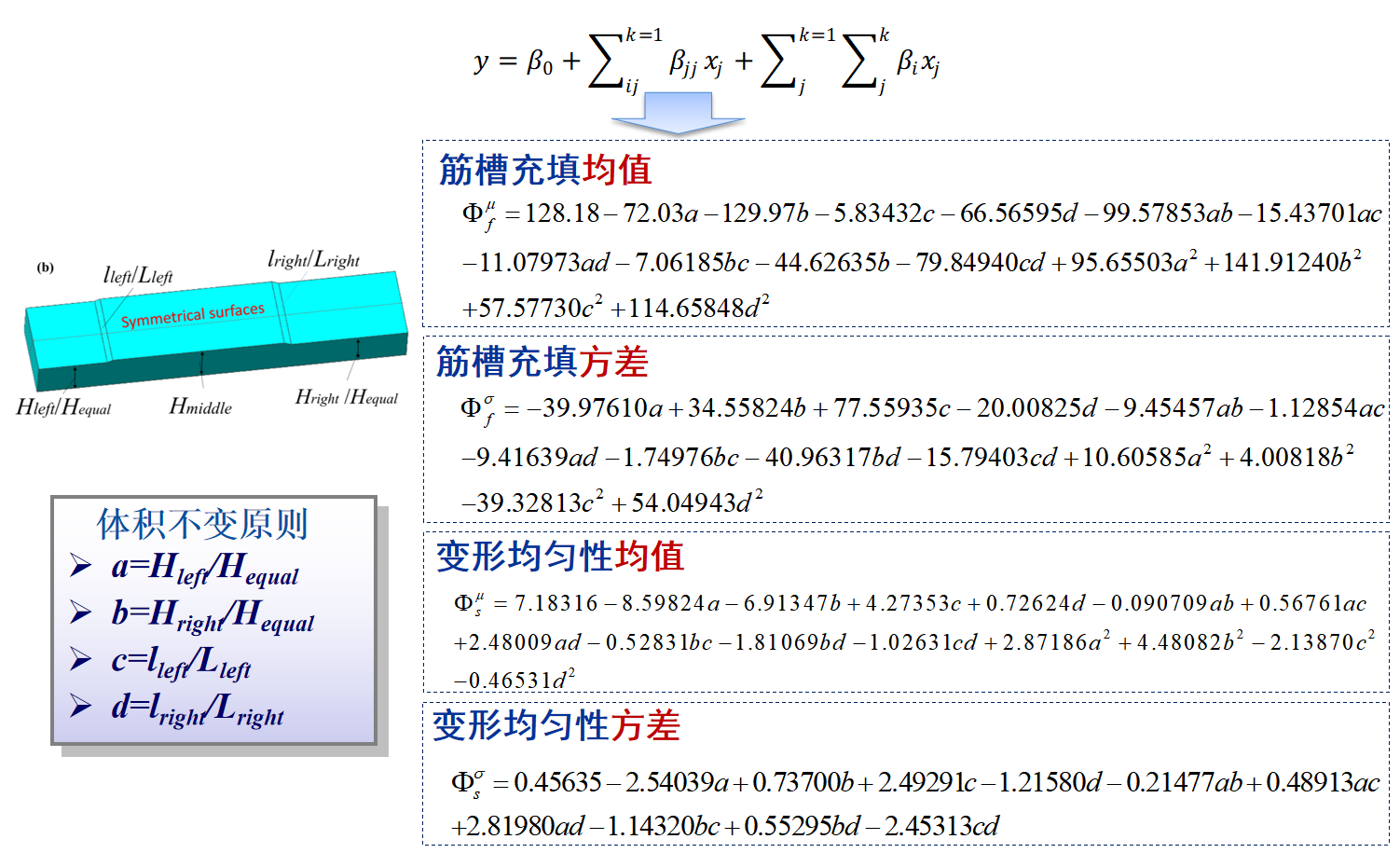 提出了多筋复杂构件筋槽充填与变形均匀性同时改善的响应面多目标优化方法;