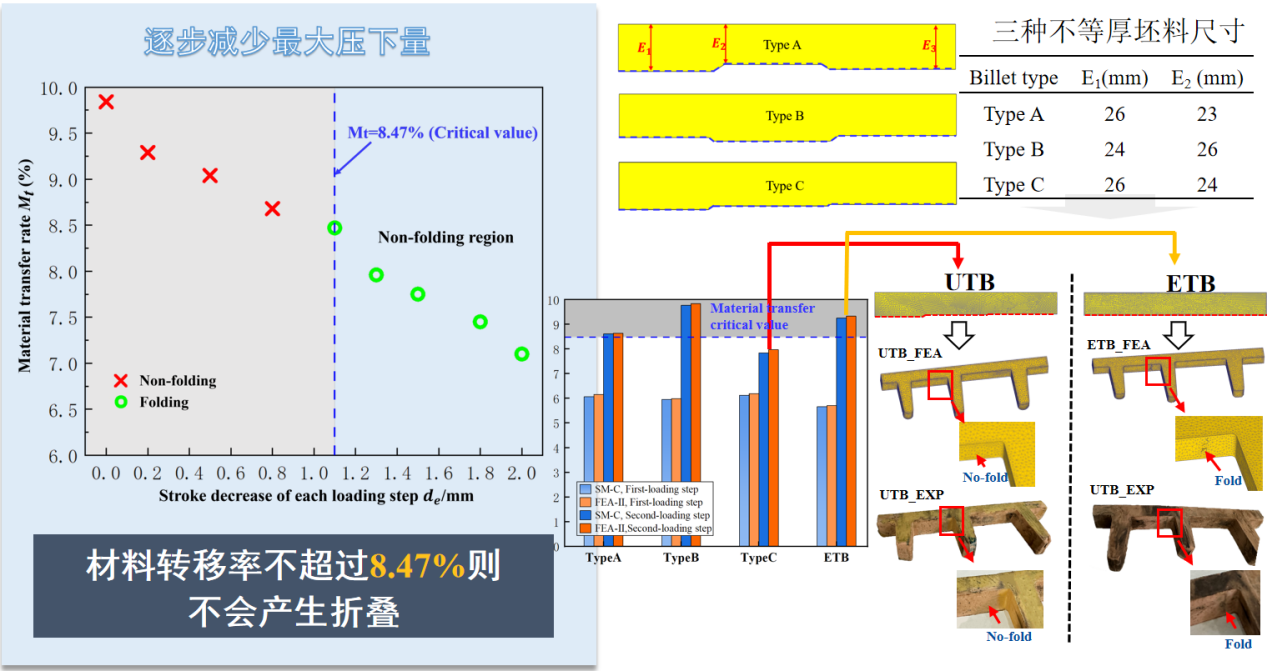 提出了基于主应力法改进的折叠快速预测与控制方法,改变各分区厚度得到三种不等厚坯料,形式C不等厚坯料加载不会产生折叠,解决过渡区折叠缺陷的困恼。