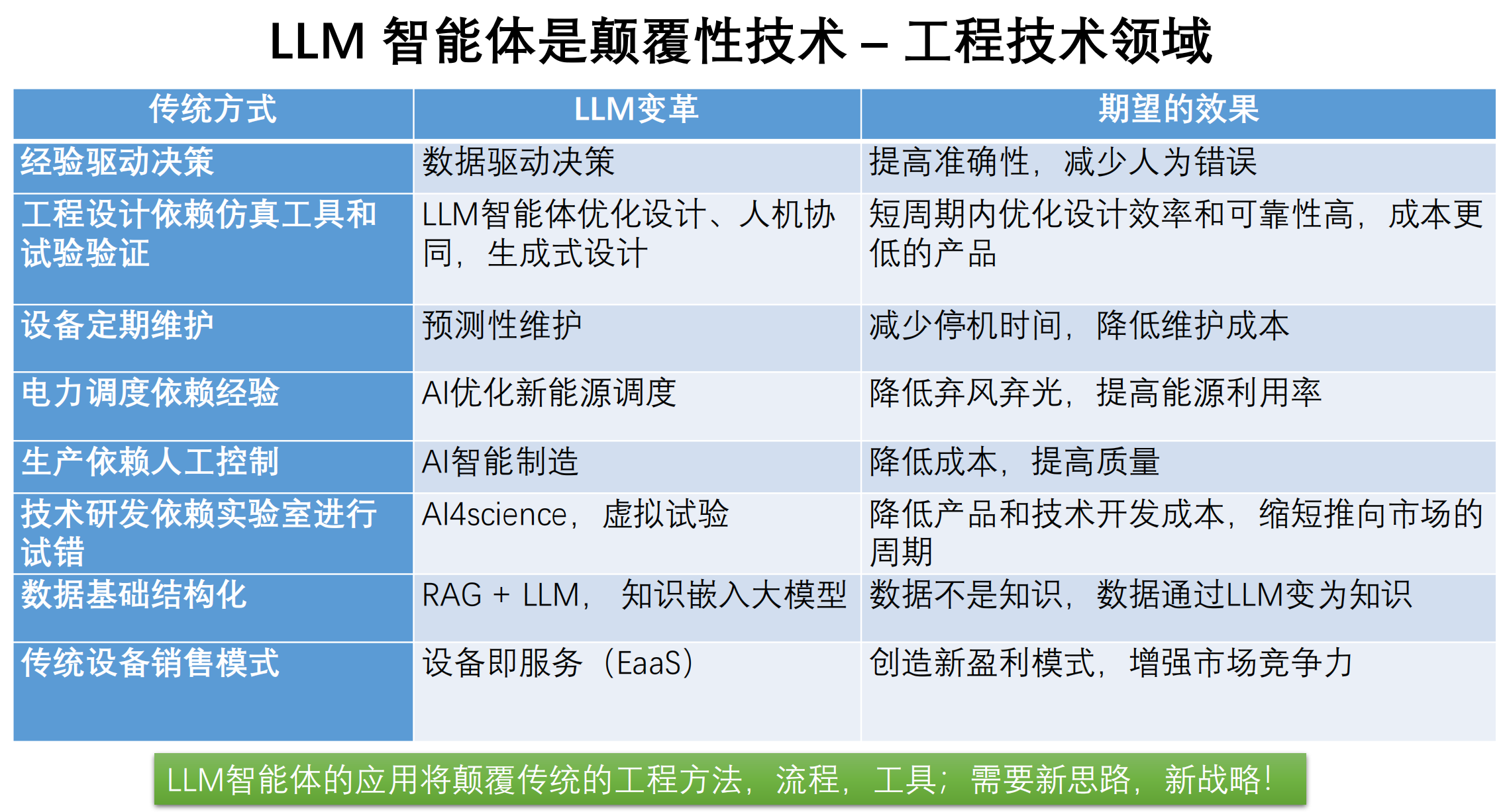 工程革命:LLM智能体颠覆传统模式——数据驱动决策使错误率降30%,AI虚拟实验缩短研发周期60%,预测性维护减少停机70%,RAG技术实现数据到知识的10倍转化。