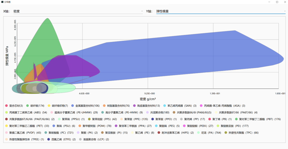 该软件可基于ASHBY图、毯式曲线等实现复合材料性能数据的可视化、定制化管理及优选,集成了复合材料许用值分析计算等工程计算实用功能。
